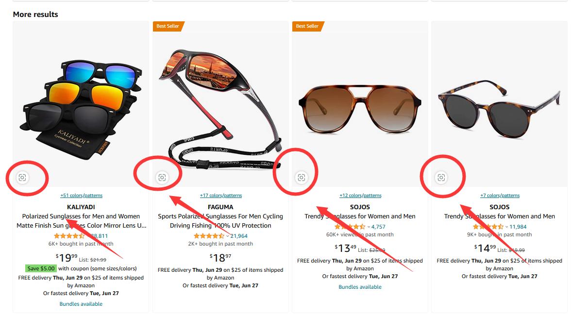 最近,亞馬遜搜索某些產(chǎn)品關(guān)鍵詞時(shí),可以發(fā)現(xiàn)在圖片的左下角,悄然新增了一個(gè)按鈕,就是下面這個(gè)。