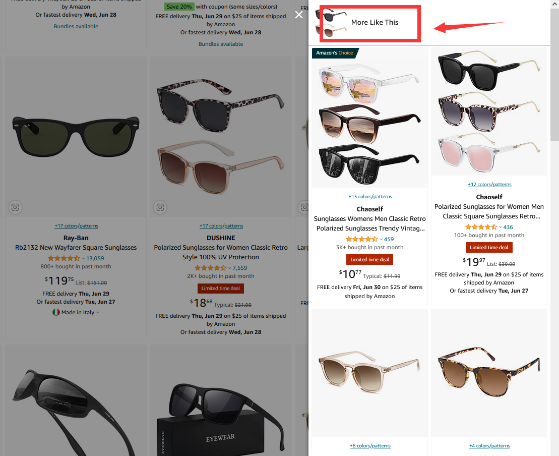 這就是“More Like This”(更多相似產(chǎn)品)的搜索框。在這個(gè)搜索框里,你會(huì)發(fā)現(xiàn)系統(tǒng)推薦給你的更多的相似產(chǎn)品,這個(gè)推薦的框依然是可以下拉的,并且有很多的推薦結(jié)果。