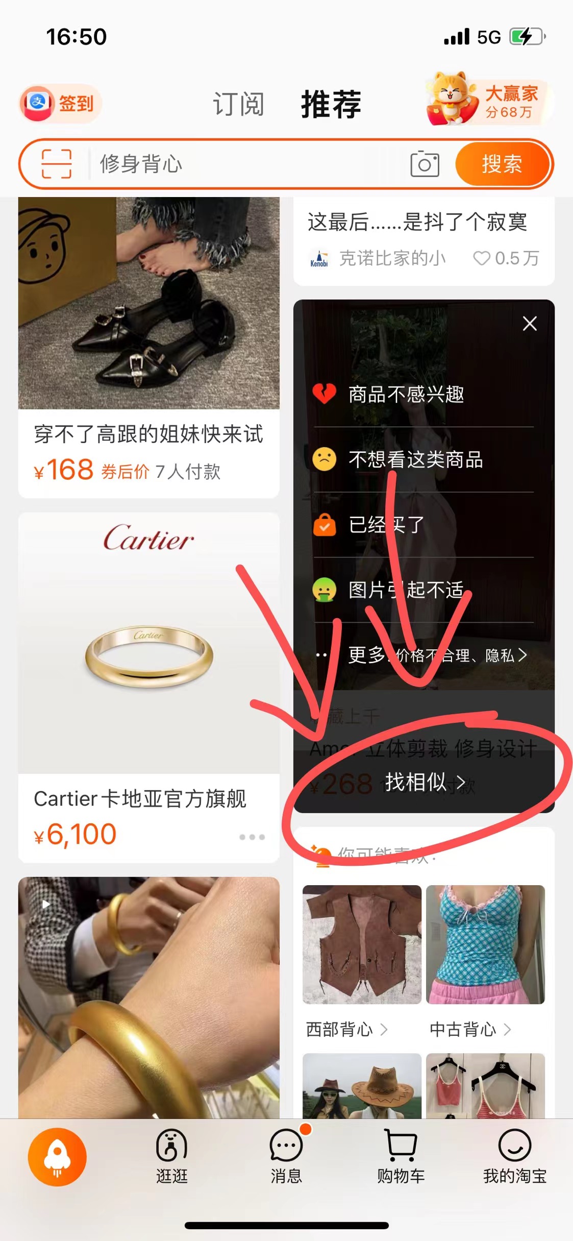其實(shí)這就是我們國(guó)內(nèi)正在用的淘寶“找相似”功能!當(dāng)你找到一件你比較滿(mǎn)意的單品,但是覺(jué)得還差點(diǎn)什么,我們就可以從找相似入手。