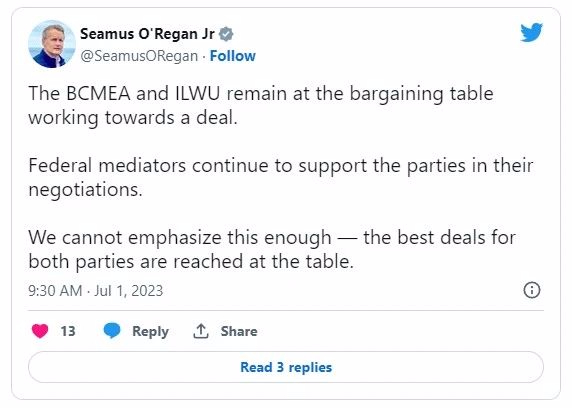 霍姆斯說:“此次罷工影響了約7,400名碼頭裝貨員和省內(nèi)30多個(gè)港口的49家私營雇主,其中包括加拿大最繁忙的溫哥華港口。"我們有四分之一的貨物通過西海岸港口運(yùn)輸,所以這將對(duì)我們經(jīng)濟(jì)的各個(gè)方面造成沖擊。它將加劇通貨膨脹,增加加拿大家庭和企業(yè)的成本,并給加拿大經(jīng)濟(jì)帶來嚴(yán)重?fù)p害。"
